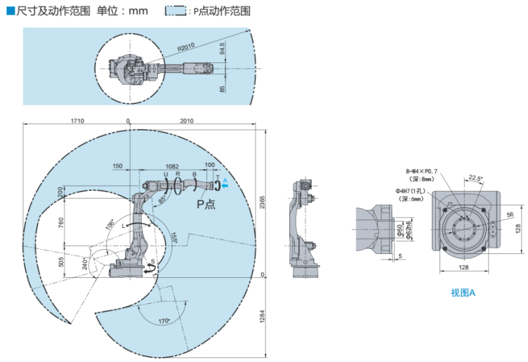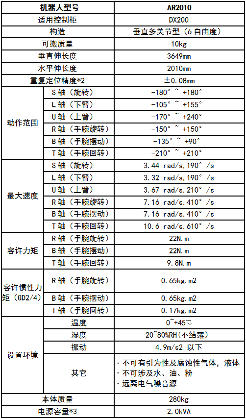 6軸垂直多關節(jié) 負載:10Kg 動態(tài)范圍:2010mm