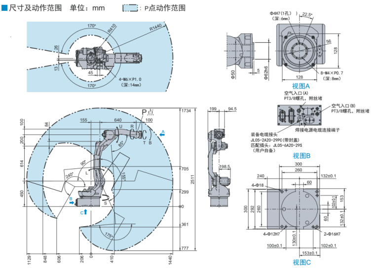 尺寸及動(dòng)作范圍