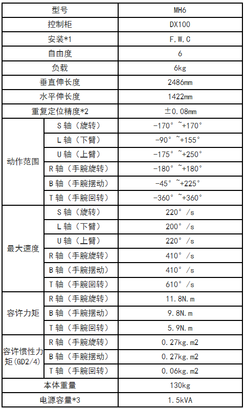 *2:大型機(jī)種:負(fù)載在50kg以下的MOTOMAN機(jī)器人
